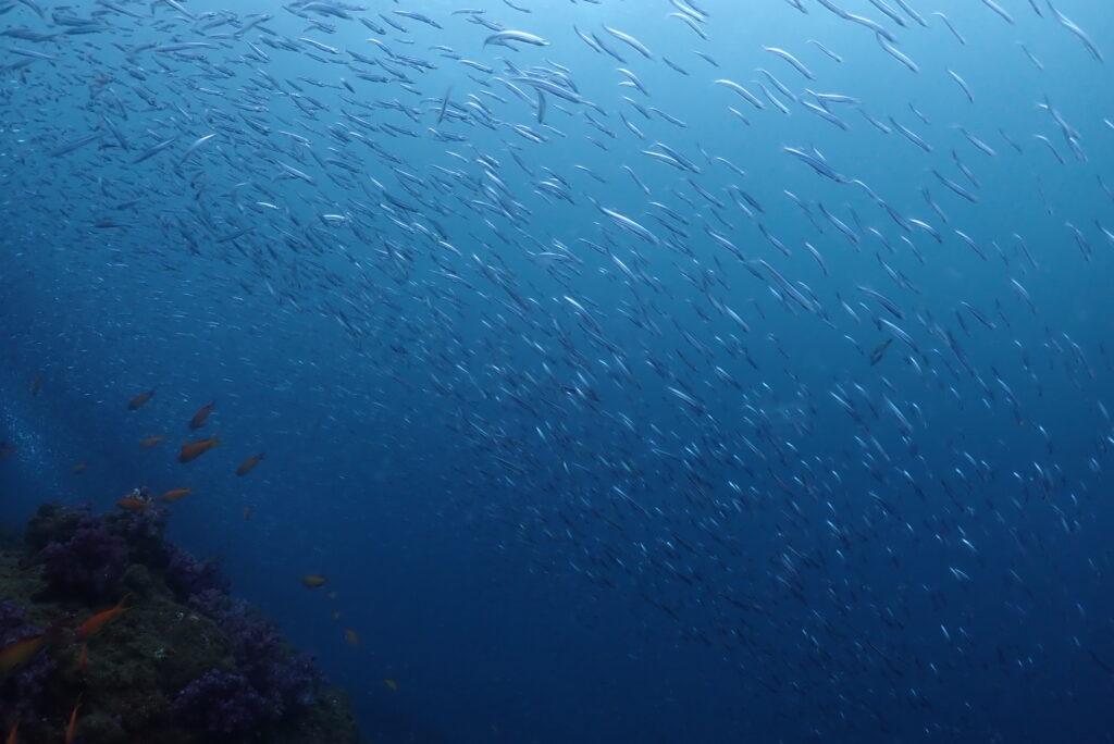 そしてお魚も群れ群れ♪特に今回は何か追われるかの如くアジの大群が押し寄せてきました!!