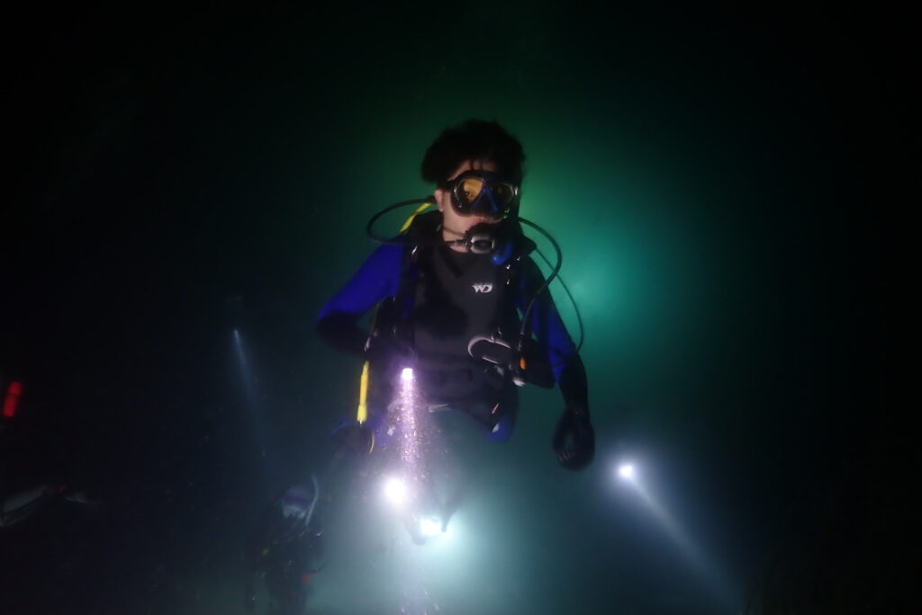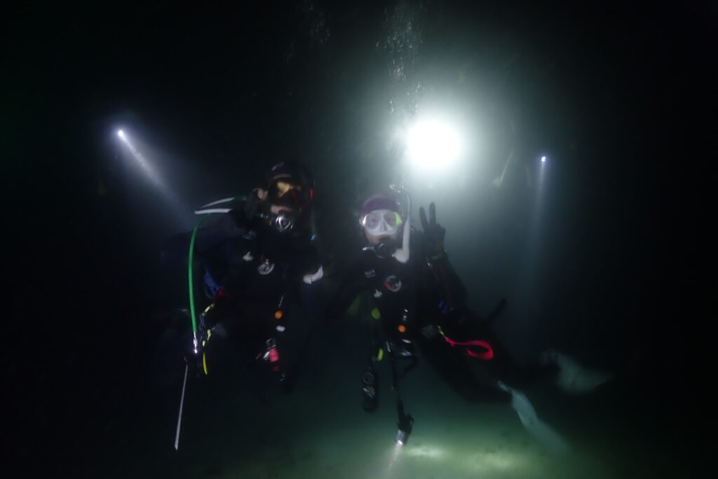 ナイトダイビングはこんな感じで、真っ暗な海の中をみんなで辺りを照らしながら探検しました!