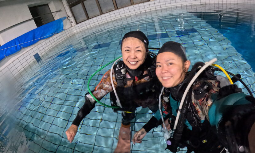 数日前、最近スキューバダイビングのライセンスを取得した方がそのまま冬まで潜れるようになりたい!ってことで先にドライスーツまで準備をしてもらい使用方法と泳ぎの練習をみっちり3時間行ってきました✨