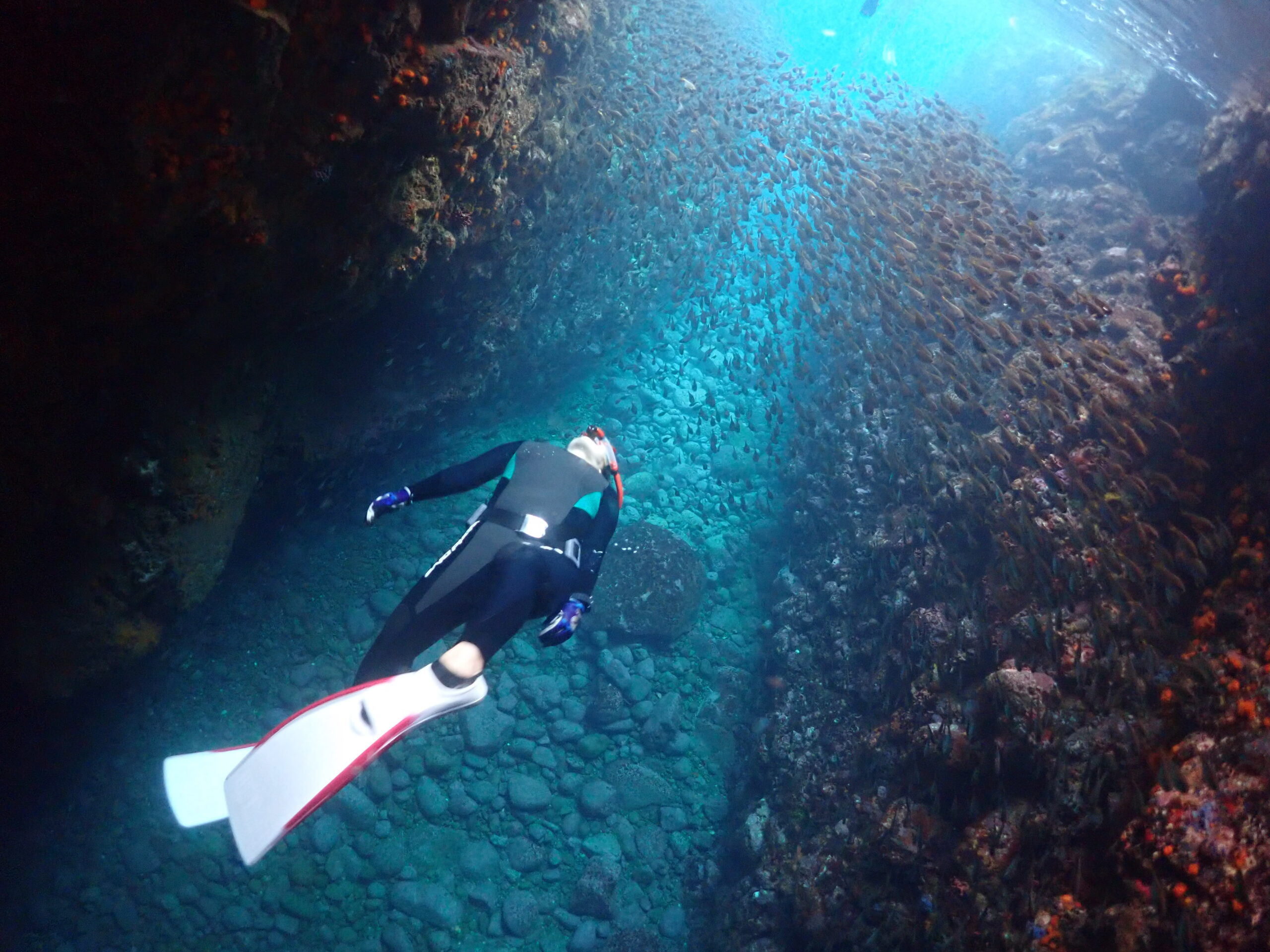 カラフルなソフトコーラルに、浅い深度の洞窟も魅力的~!冒険チックにスキンダイビングが出来ちゃいます!毎年新しい場所も開拓中!今年はどこを見てみようかな~!