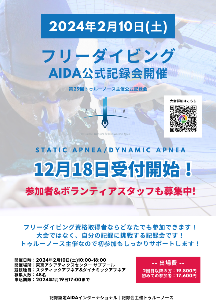 大会|記録会情報【2024年2月11日-12日】第30回AIDAトゥルーノース・フリーダイビングプール種目公式記録会