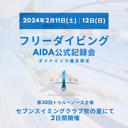 大会|記録会情報【2024年2月11日-12日】第30回AIDAトゥルーノース・フリーダイビングプール種目公式記録会