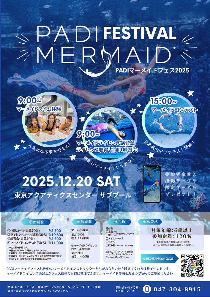 2025.10.02 イベント情報 【2025年もマーメイドフェス開催!】お得に体験できるスペシャルイベント! Post Share Hatena LINE RSS feedly Pin it note 2024年に始まったPADIマーメイドフェス、今年も12月20日に東京アクアティクスセンターにて開催致します! 昨年はインストラクターも入れると100名近いマーメイドが集まり盛大なイベントとなりました! 今年も体験してみたい方、ライセンスを取りたい方、コンテストに出場してみたい方は是非この機会にご参加ください。 詳しくはイベントページよりご覧ください。 PADIマーメイドフェス2025 キャンペーン&SALE情報 お得な情報はこちら LINE note ※キャンペーン一部継続中!【2025年冬用ウェットスーツキャンペーン第一弾】5mmツーピースアプネアスーツ先行受注キャンペーン始まる! 前の記事 【冬の海を楽しむ準備を始めましょう!】ドライスーツスペシャリティコース取得キャンペーン 次の記事
