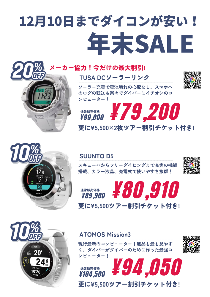 ダイブコンピューターをお持ちでないかたに朗報!もちろん買い替えの方も!