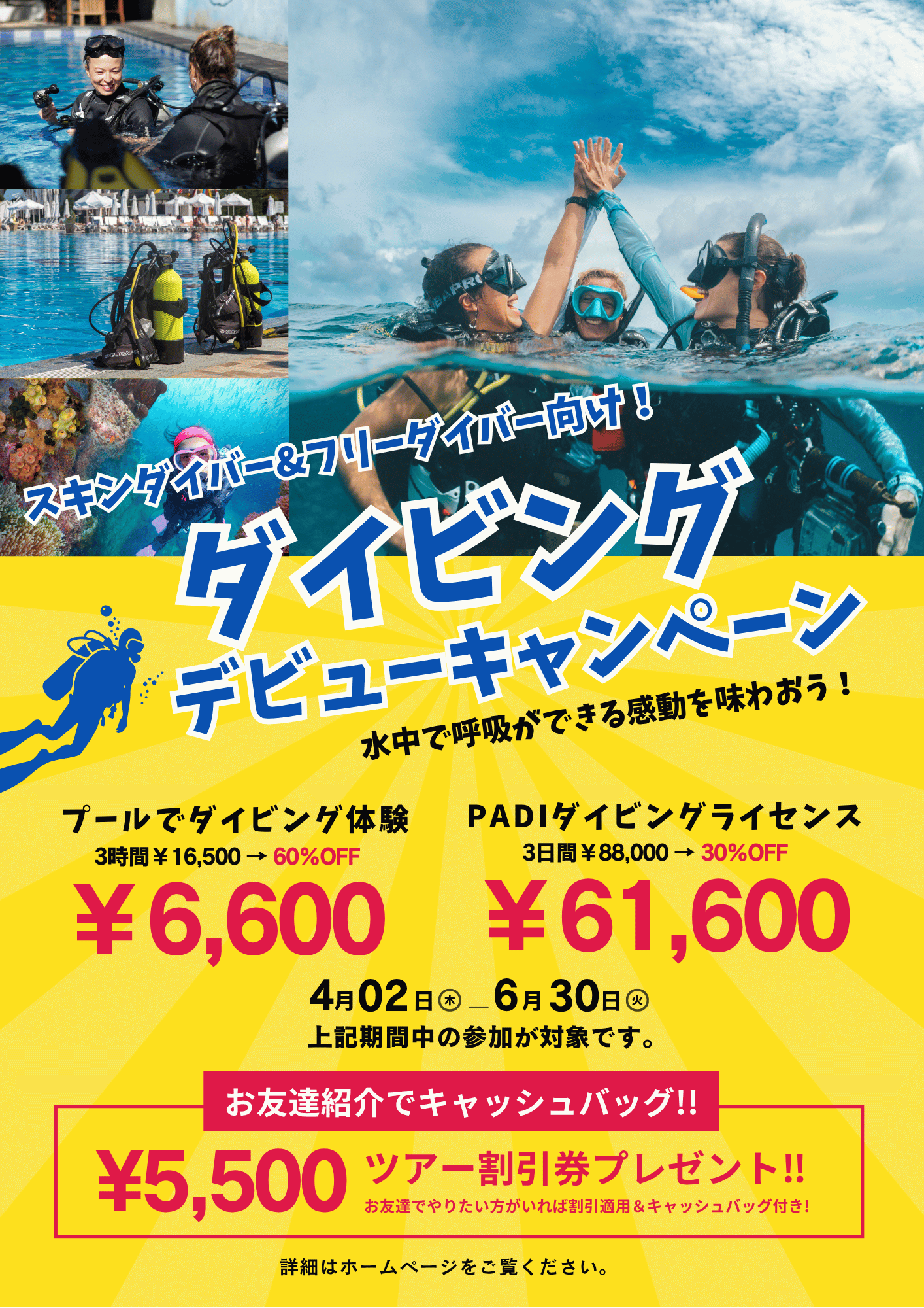 トゥルーノースでは多くのスキンダイバー、フリーダイバーの方にご利用いただいておりますが、まだ水中でボンベを使ったことのない方々へスペシャルなキャンペーンをスタートします!